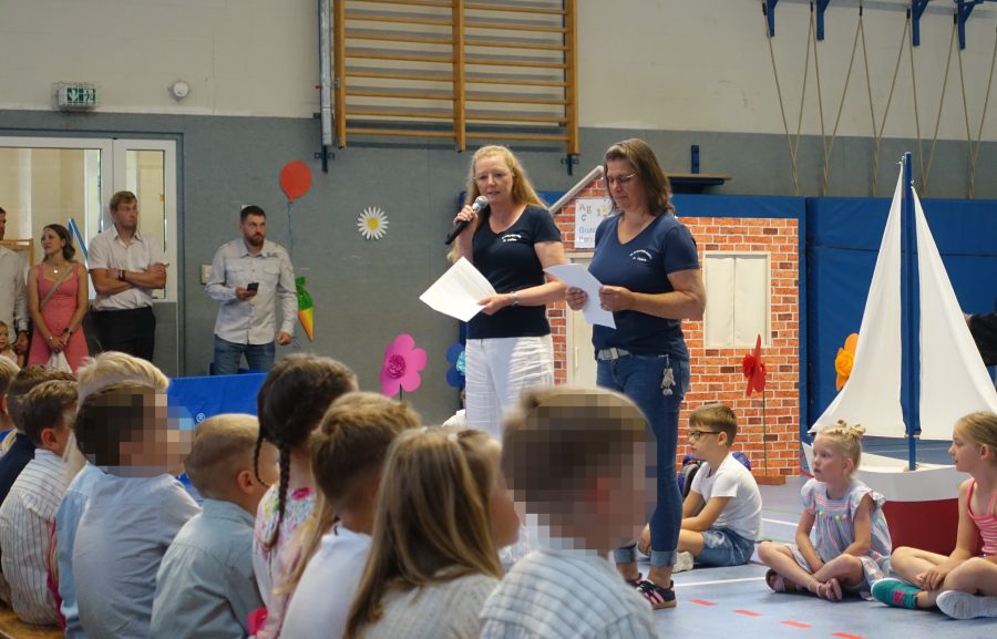 Begrüßt wurden die Kinder mit ihren Familien und Freunden von Frau Coers und Frau Holze.