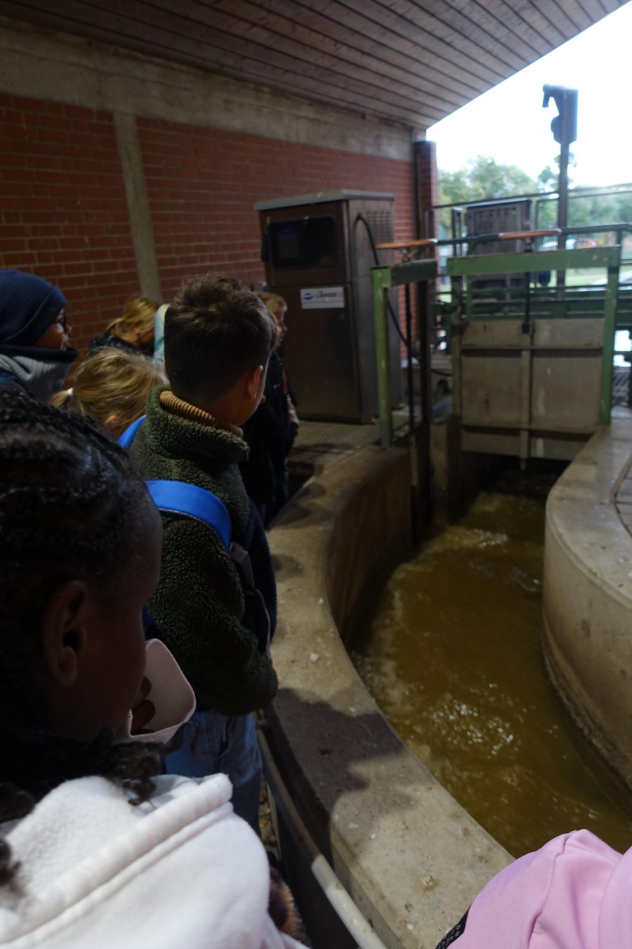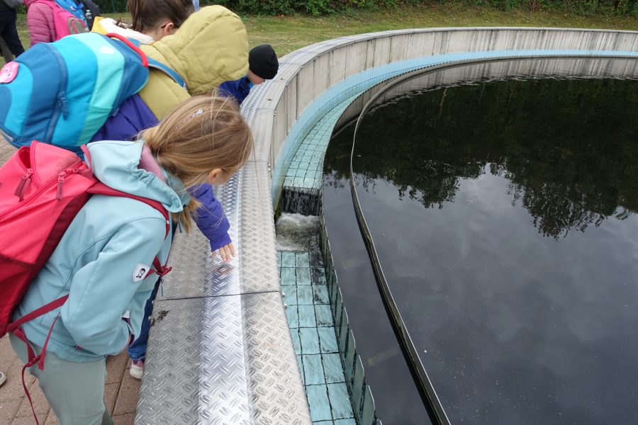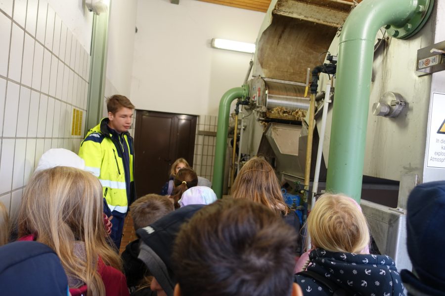 Wir sahen große Becken mit Rechen, in denen das Abwasser zuerst von grobem Schutz wie Papier oder Plastik befreit wird. Danach floss das Wasser in weitere Becken, in denen sich der Schmutz am Boden abgesetzt hatte. Interessant war das Belebungsbecken. Dort gab es Millionen kleiner Bakterien. Diese Bakterien helfen, das Wasser sauber zu machen. Auch eine kleine Laborstation gab es auf dem Außengelände. Hier werden regelmäßig Wasserproben entnommen und auf umweltfreundliche Werte überprüft.