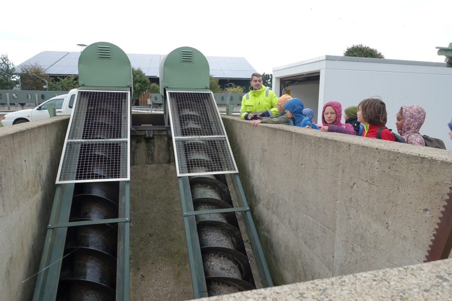 Uns wurde gezeigt, wie eine Kläranlage funktioniert und warum es so wichtig ist, dass das Wasser gereinigt wird, bevor es wieder in den Fluss oder See geleitet wird. Parallel machten wir einen Rundgang durch die Anlage.