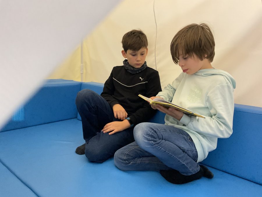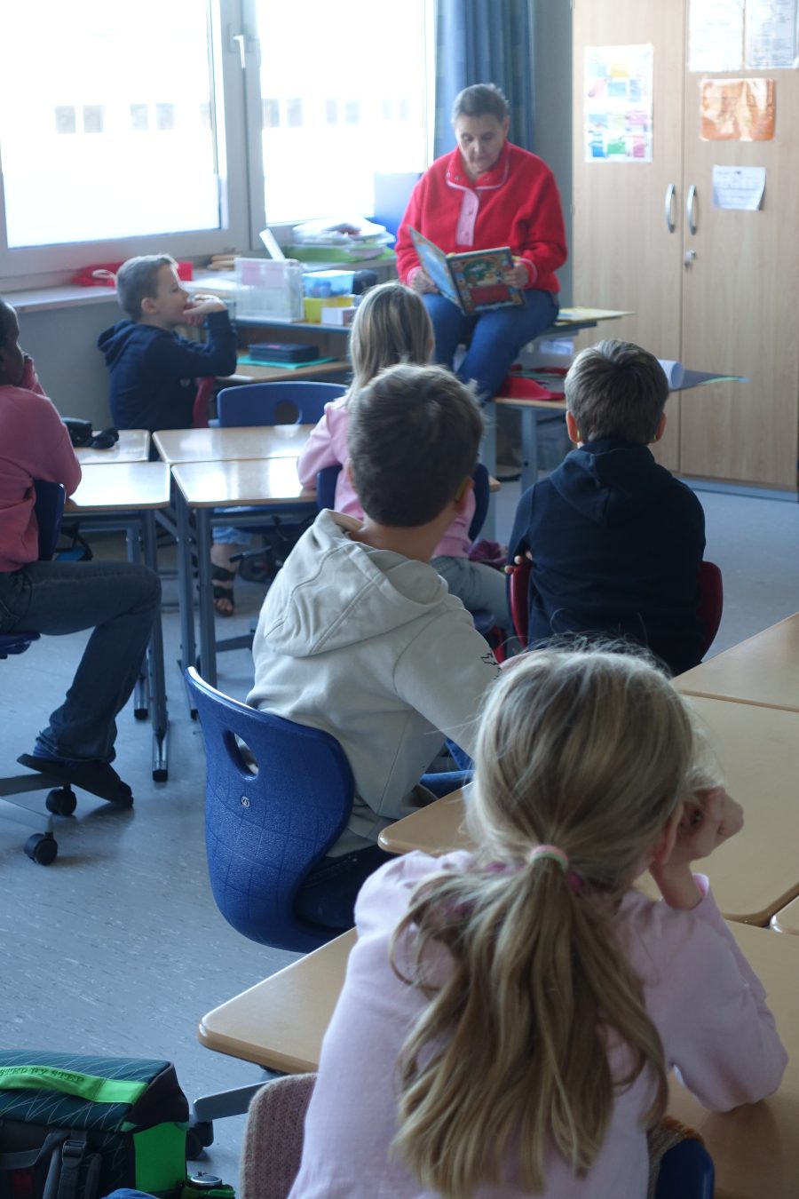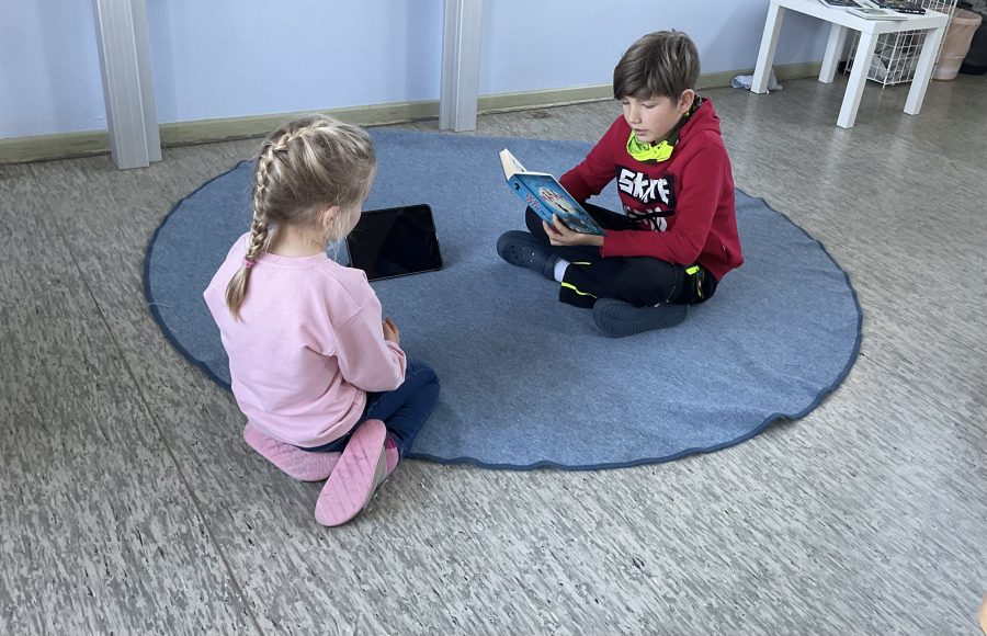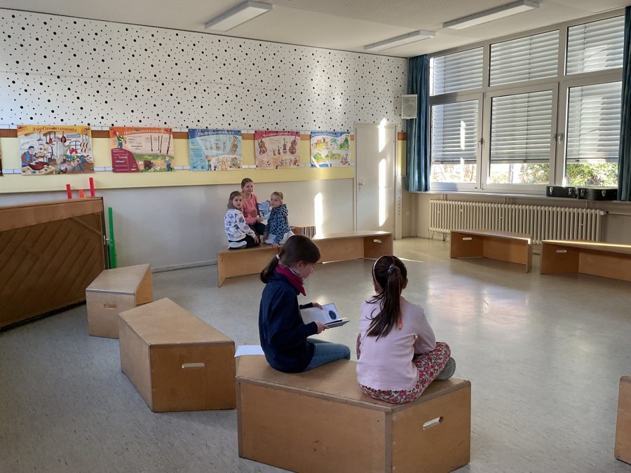 Die ViertklässlerInnen lesen dem 2. Jahrgang vor.