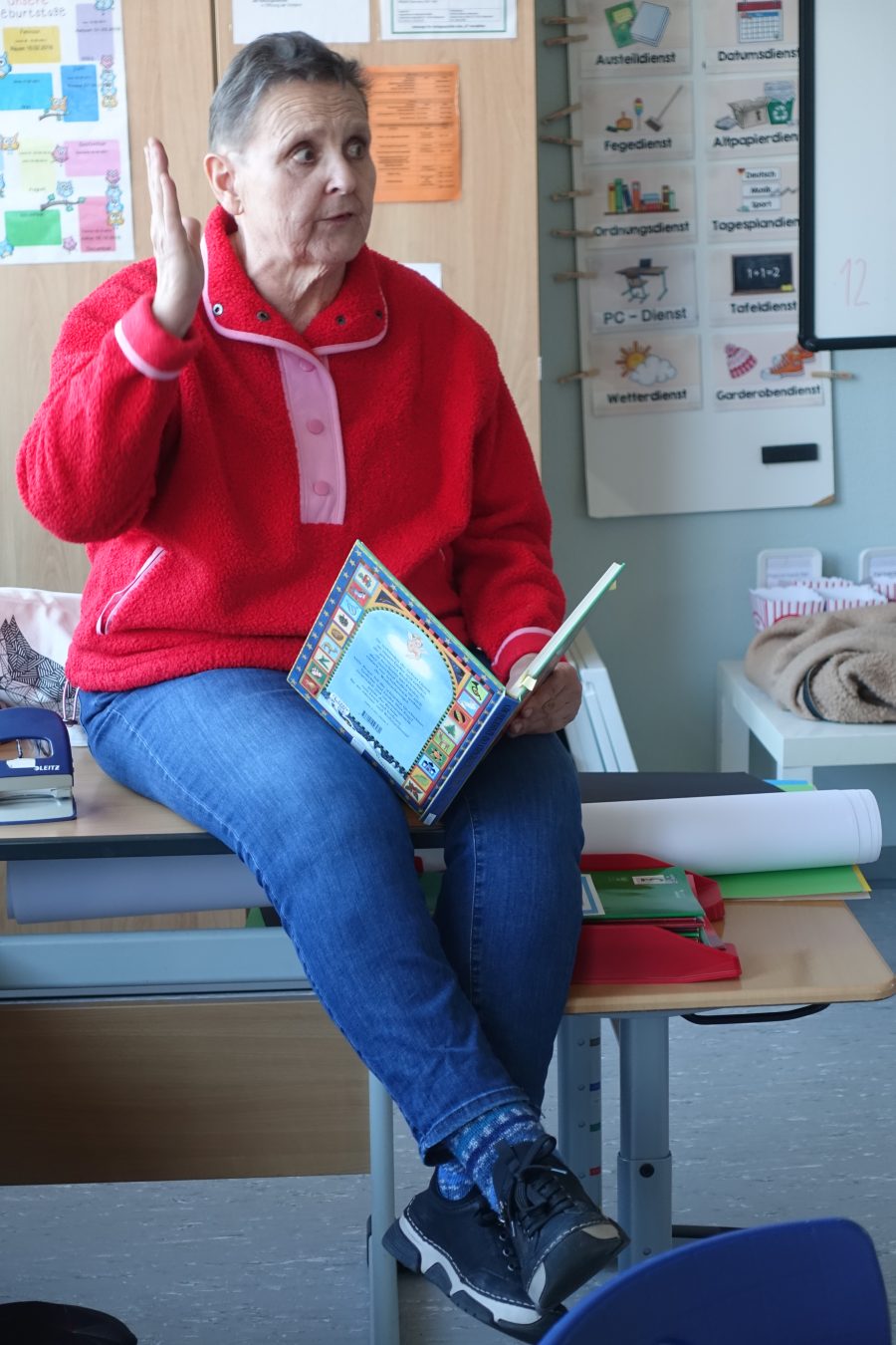 Der 3. Jahrgang trägt für Frau Horatzek das Gedicht „Danke für jede Seite“ vor.