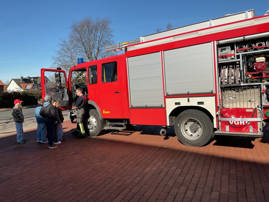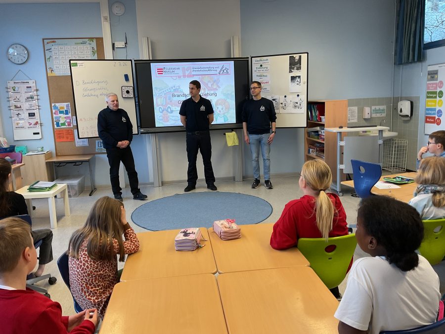 Anfang März hatte der dritte Jahrgang der GS Borsumer Kaspel einen spannenden Tag mit der Freiwilligen Feuerwehr Harsum. Die Brandschutzerzieher Peter Hiller, Marcel Graen und Jannick Gühne besuchten uns, um den Kindern das richtige Verhalten im Ernstfall beizubringen.