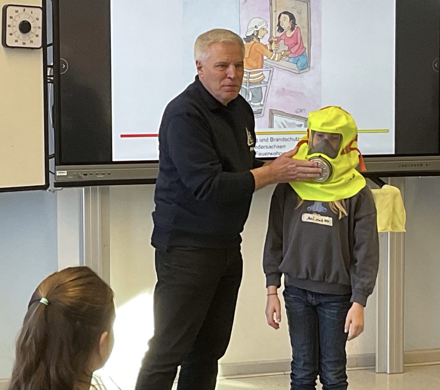 Besonders beeindruckt zeigten sich die Jungs und Mädchen von der Gefahr durch Rauch: Die Information, dass man im Brandrauch nur etwa zwei bis drei Atemzüge machen kann, bevor man ohnmächtig wird, sorgte für staunende Gesichter. Wie wenig man in einem verrauchten Raum sieht, erfuhren die Kinder durch eine spezielle Simulationsatemmaske selbst: Das Ergebnis war Nichts.