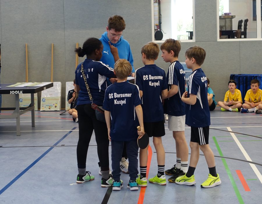 Die Grundschule Borsumer Kaspel richtete mit dem diesjährigen Tischtennis-Rundlauf-Cup ein sportliches Highlight aus. Insgesamt traten sechs Grundschulen mit jeweils zwei Teams aus den Jahrgängen 3 und 4 gegeneinander an und sorgten für spannende und abwechslungsreiche Spiele. Beim Rundlauf handelt es sich um eine besonders dynamische Spielform des Tischtennis, bei der die Kinder nach jedem Schlag um den Tisch laufen. Dadurch sind nicht nur Geschicklichkeit und Schnelligkeit gefragt, sondern auch Teamarbeit und Fairness.