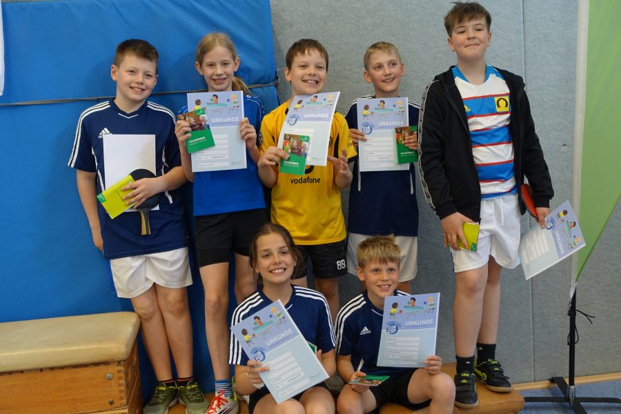Die Teams aus Borsum zeigten großen Einsatz und konnten sich in einem starken Teilnehmerfeld behaupten. Nach vielen packenden Ballwechseln erreichten sie gleich zweimal den dritten Platz. Damit standen die Borsumer Mannschaften auf dem Treppchen und konnten ihren Erfolg gebührend feiern. Erstmals wurde auch der erste Platz mit einem Wanderpokal geehrt. Dieser ging verdient für Jahrgang 3 an die GS Harsum und für Jahrgang 4 an die GS Moritzberg.