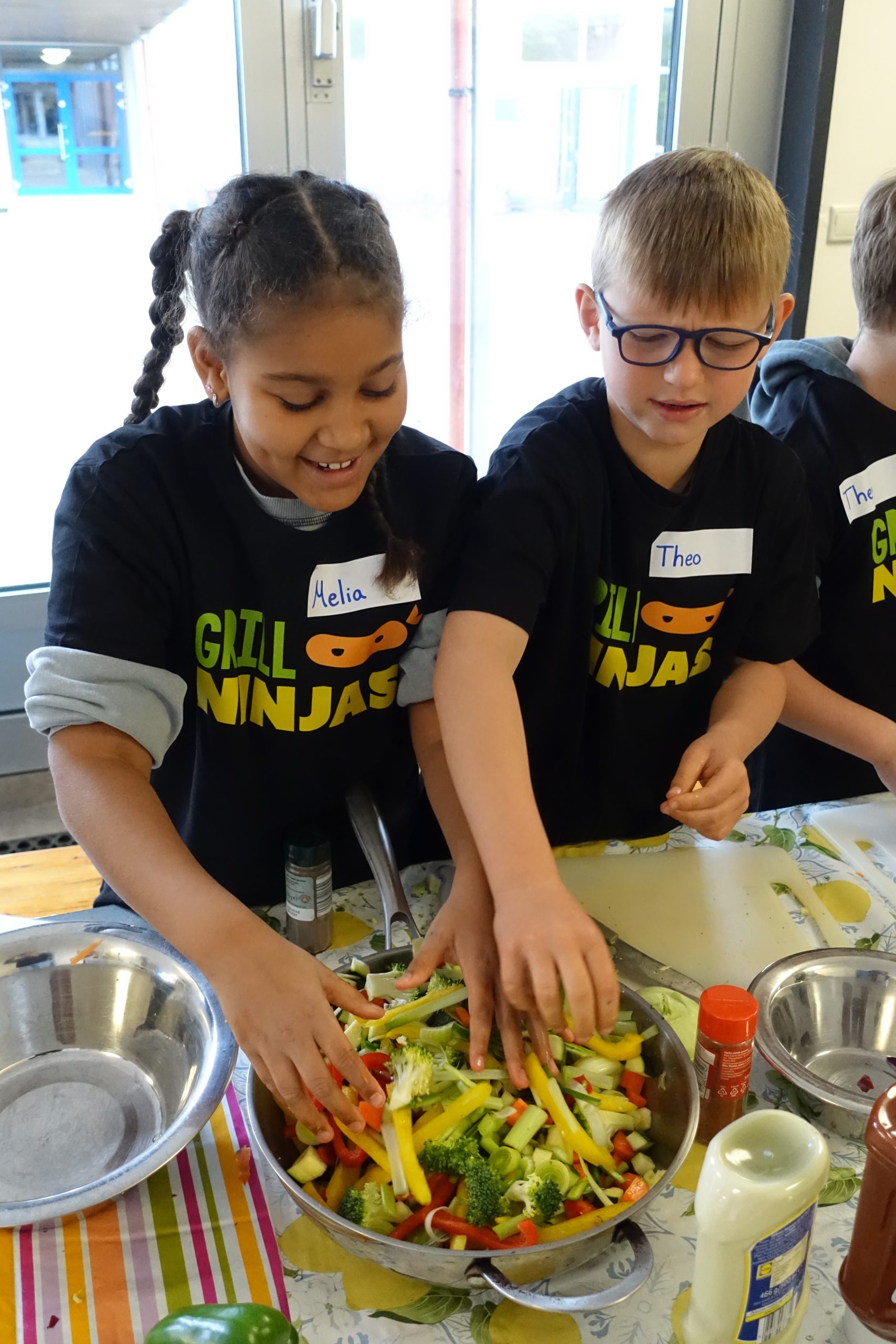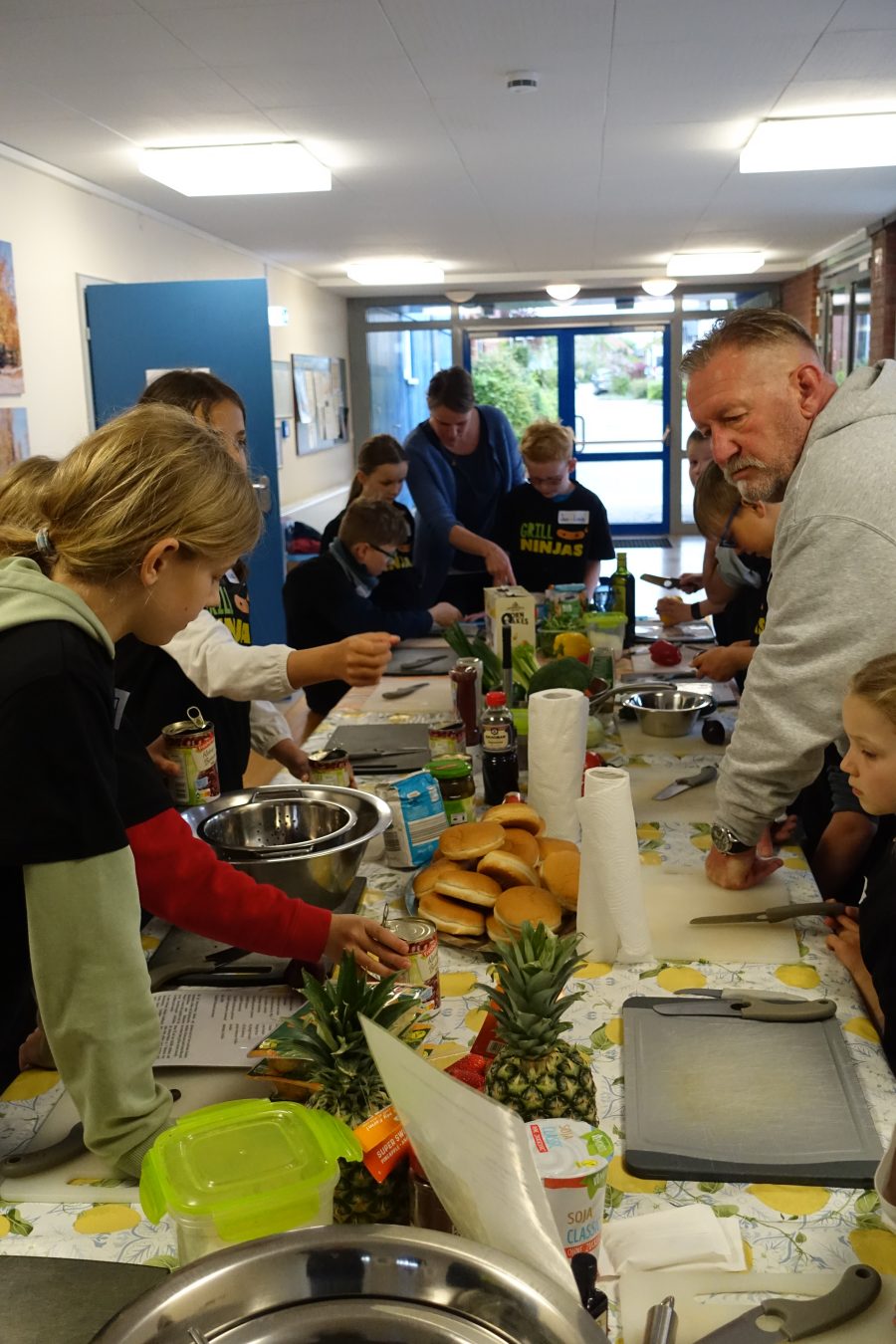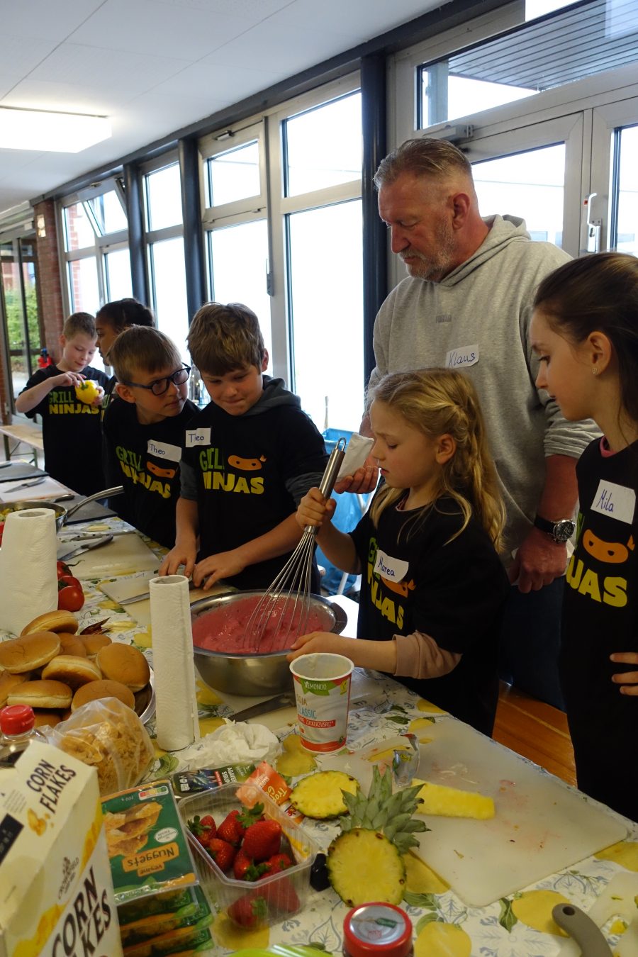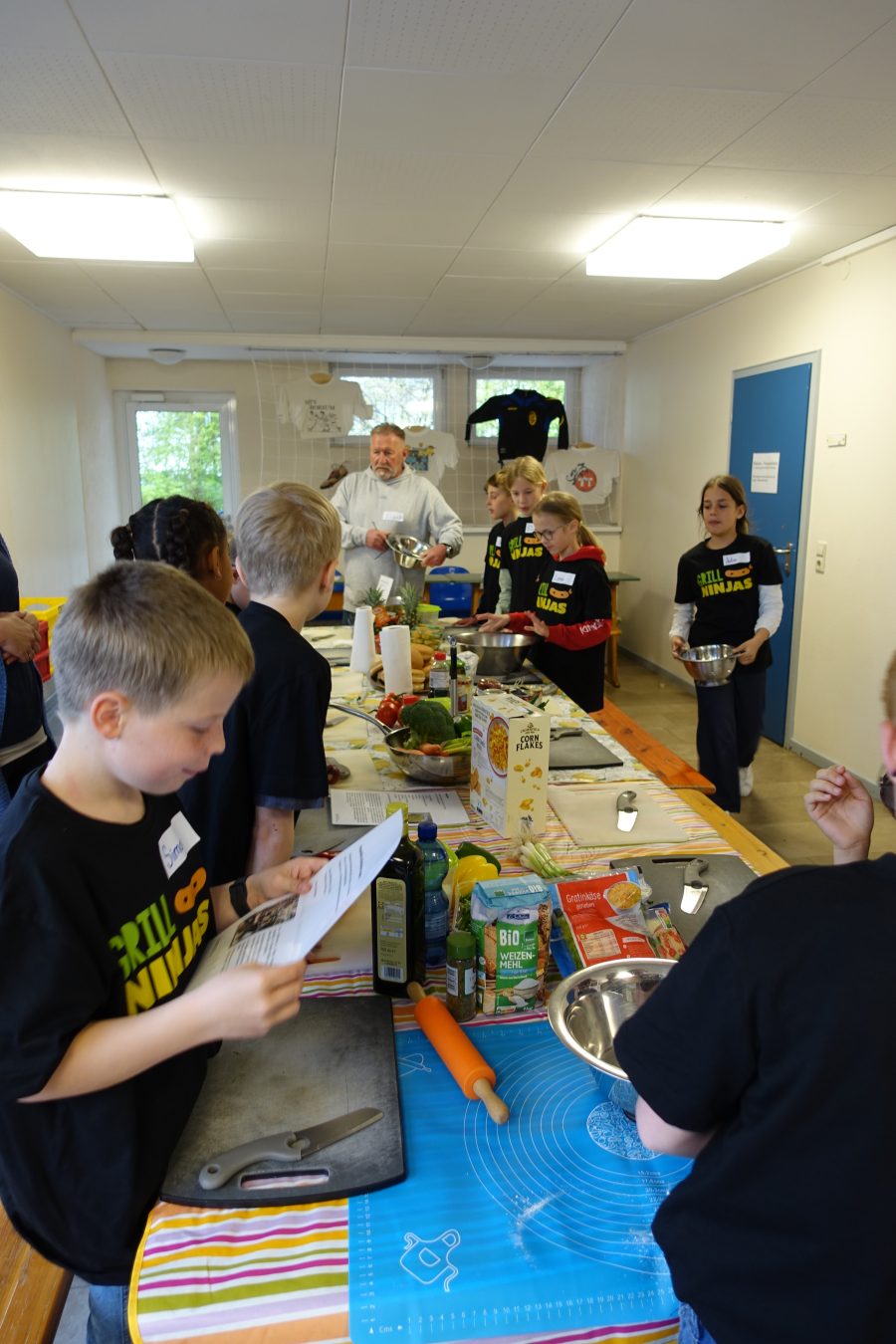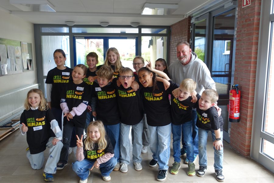 Am Montag, den 20.04.26 war es wieder soweit. Wie bereits in den vergangenen Jahren hatten die Klassensprecher*innen der Jahrgänge zwei bis vier die Möglichkeit an der beliebten ,, Grillninja“- Aktion teilzunehmen. Unter der fachkundigen Anleitung von Grillmeister Klaus wurde gemeinsam geschnippelt, gerührt und geknetet.