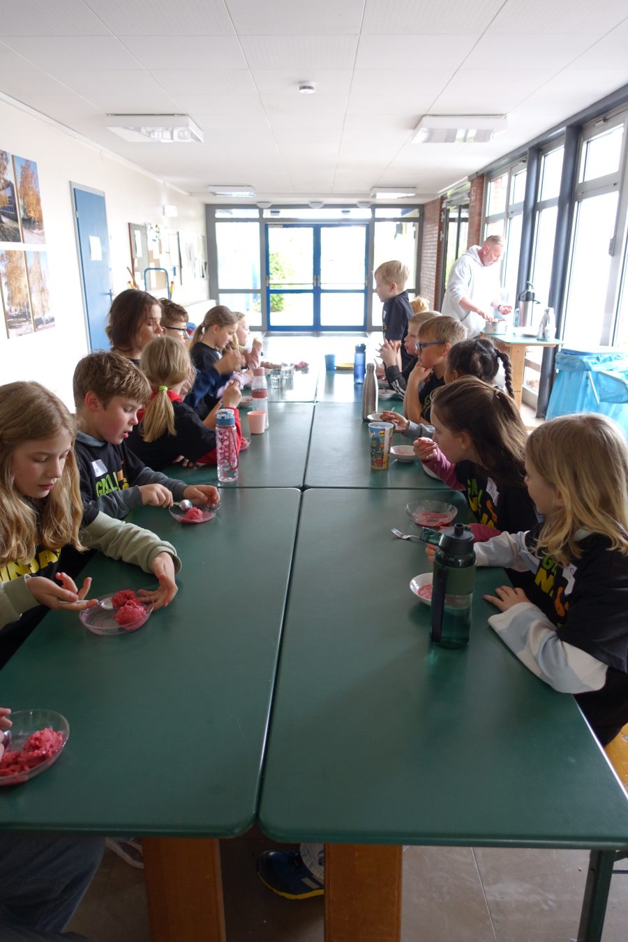 Dabei standen ausschließlich vegetarische Gerichte auf dem Programm. Mit viel Begeisterung bereiteten die Kinder leckere Burger, eine bunte Gemüsepfanne sowie knusprigen Flammkuchen zu. Zum krönenden Abschluss stellten die Kinder sogar ihr eigenes Erdbeereis her – ein echtes Highlight für alle Beteiligten.